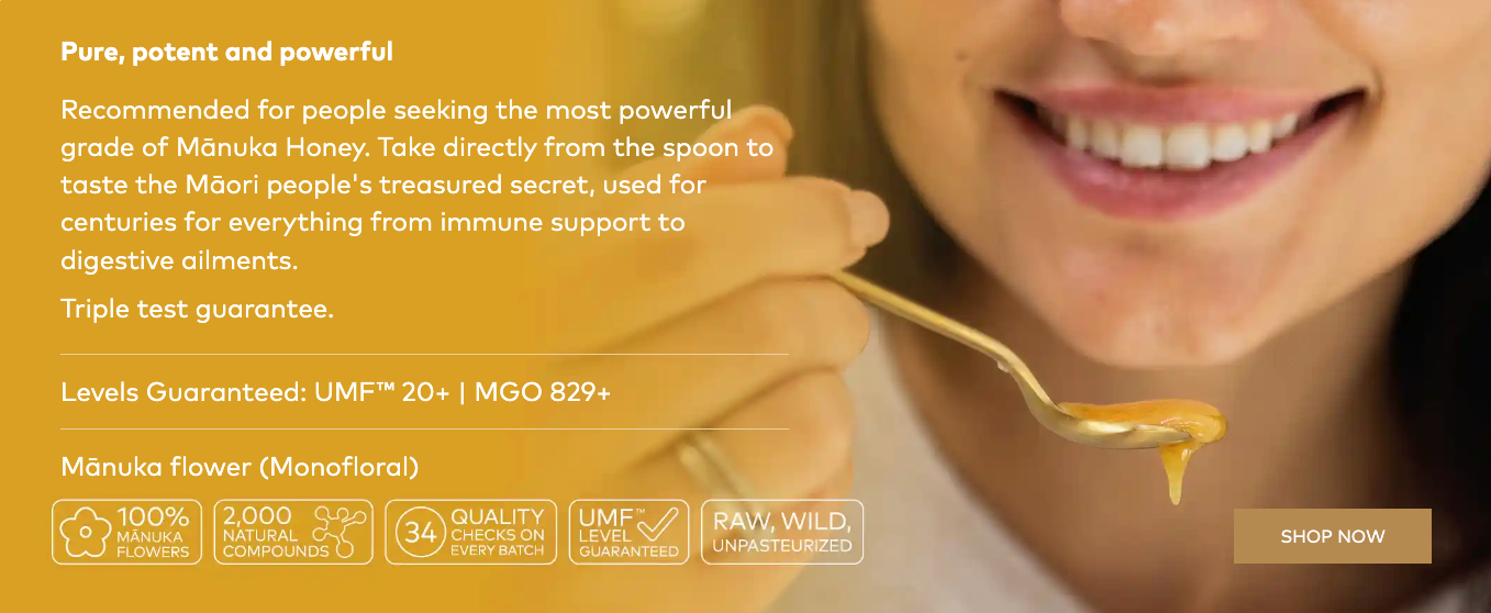 - Ajoutez du miel de Manuka UMF™ 20+ à votre thé, pain grillé, yaourt ou smoothies pour une douceur unique et complexe.